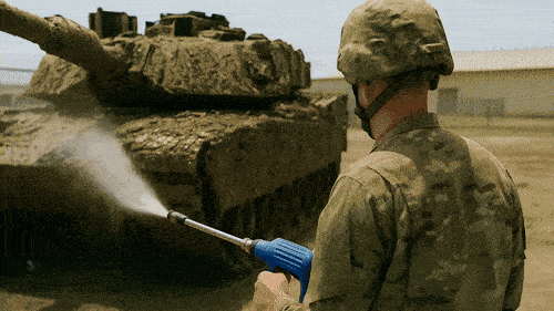 SurfaceCleanerPro uses military-grade technology — the same kind originally developed to blast grime off tanks and aircraft in the field.