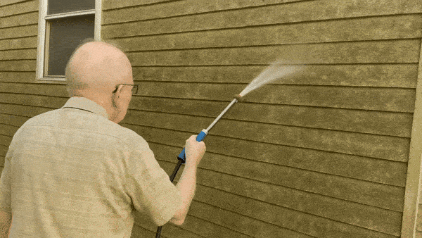 He blasted years of mildew off the siding in seconds.